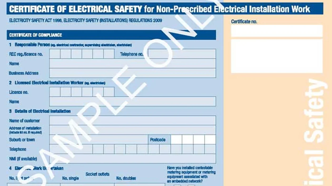 - VIC: Certificate of Electrical Safety (COES)
