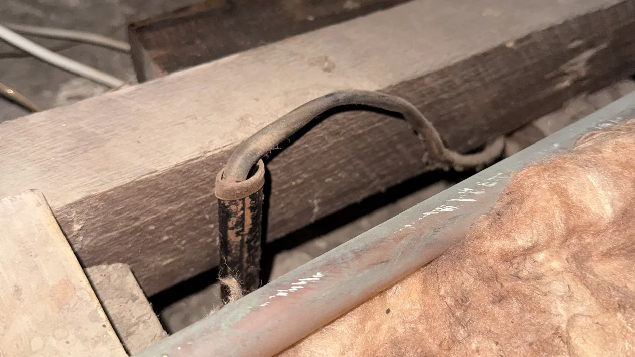 - Fire hazard: The degraded rubber insulation cracks and falls away from the conductor over time. This exposes live wiring, which can arc against nearby surfaces and ignite ceiling timbers, insulation batts, or accumulated dust.